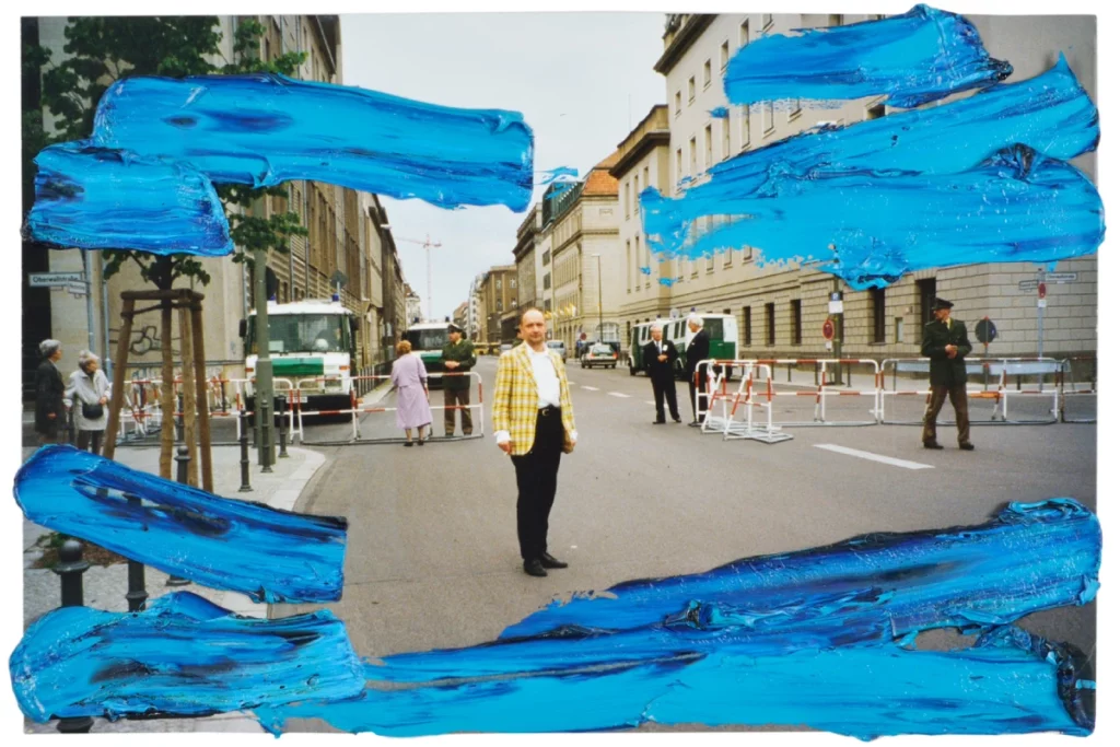 (Gold- Blau) Fotoübermalung: Öl auf Leinwand, Keilrahmen 1980 und 90er Jahre 41,4 x 61 cm