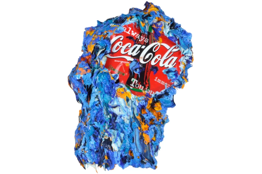 Amerikanisch-Europäisches Coca-Cola Objekt (Gold-Blau)
